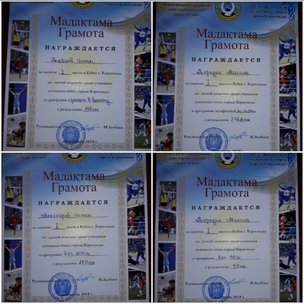 Команда юношей КГУ ОСШ 20 стала победителем Кубка г. Караганды по легкой атлетике среди учащихся основных школ г. Караганды
