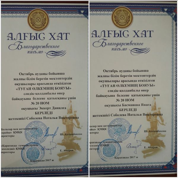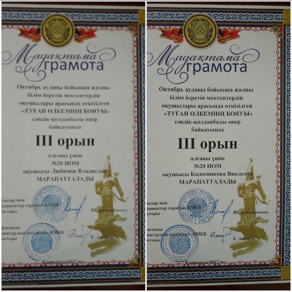Итоги участия учащихся КГУ "ОСШ №20" в конкурсе "Радуга родного края"