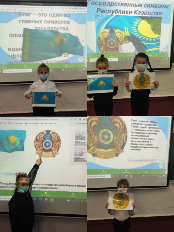 Изучаем символику Республики Казахстан. Первоклассники приняли участие в тематическом занятии посвящённом изучению государственных символов Республики Казахстан.