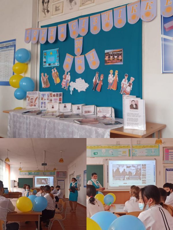 Посвящается 30-летию Независимости Республики Казахстан: - флешмоб "Казахстану 30!" и тематическая выставка в школьной библиотеке.