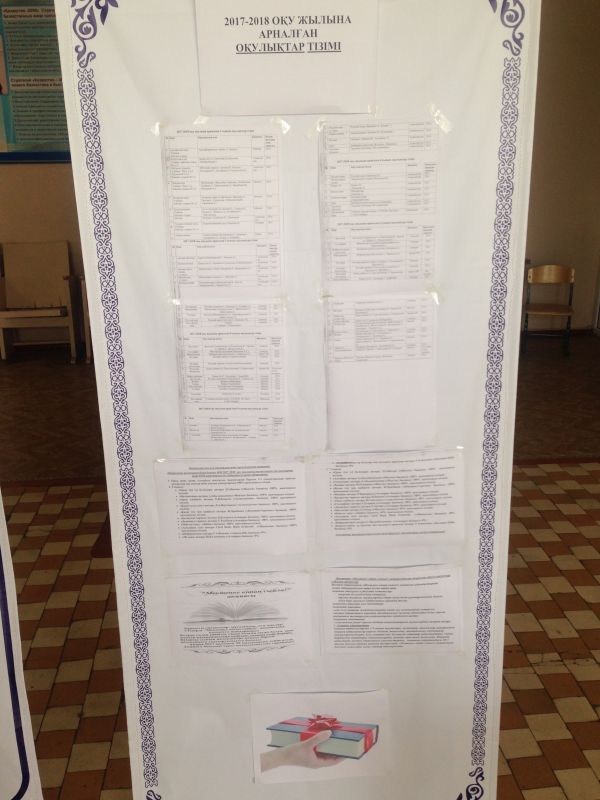 В КГУ "ОСШ № 20" оформлены стенды с указанием необходимых учебников и их авторов на 2017/2018 учебный год