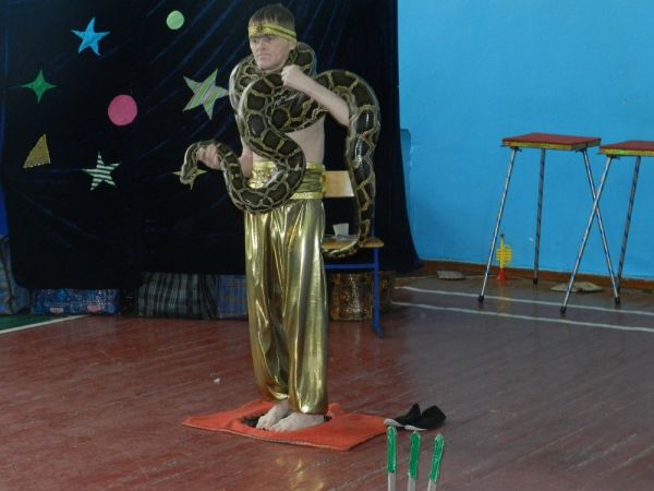 Выступали циркачи, клоун, дрессированные крысы,очаровательные голуби, озорная обезьяна,загадочные фокусы, шоу с питоном, южно - американский енот. Все это заводило детей, радостные, счастливые пошли…