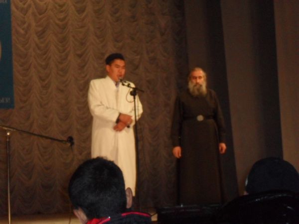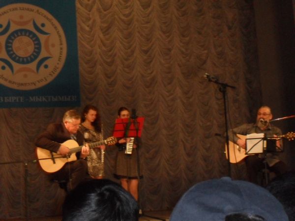 Перед публикой выступал хор Карагандинского Михайло - архангельского собора, исполнивший духовные песнопения, русские народные песни,а также бардовскую музыку.