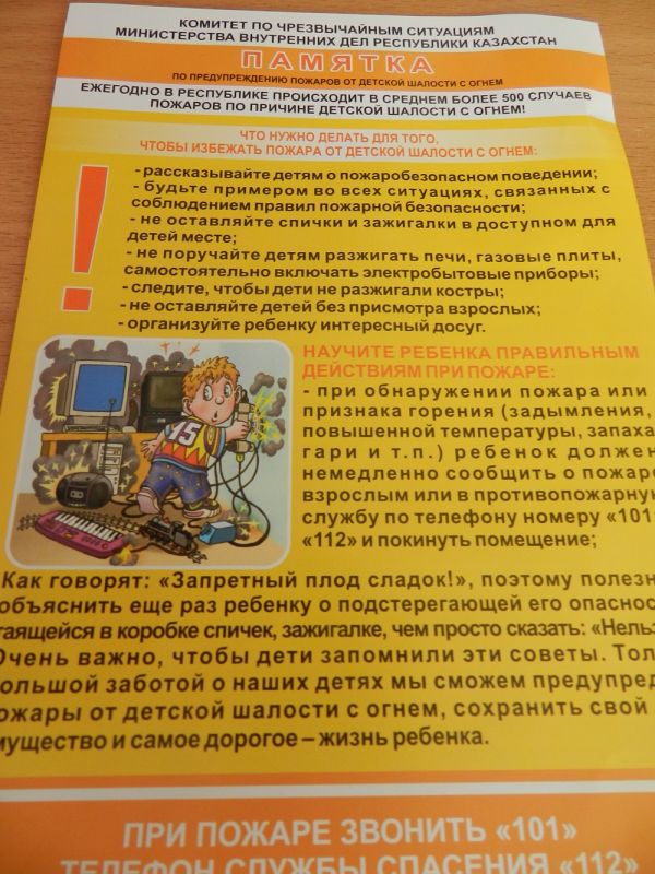 КГУ «ОСШ № 20» о проведении профилактического мероприятия сотрудником УЧС г.Караганды