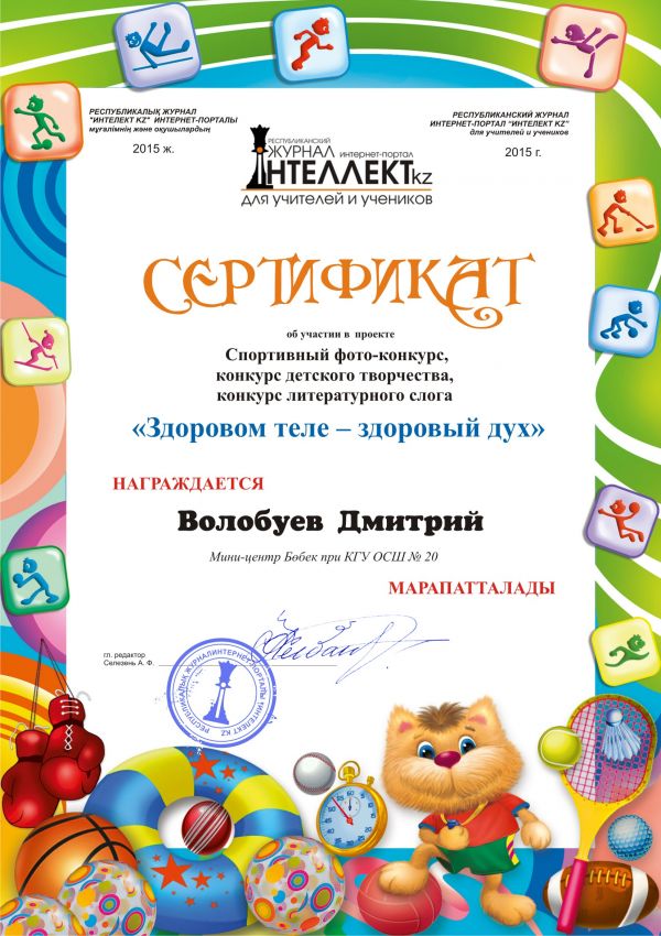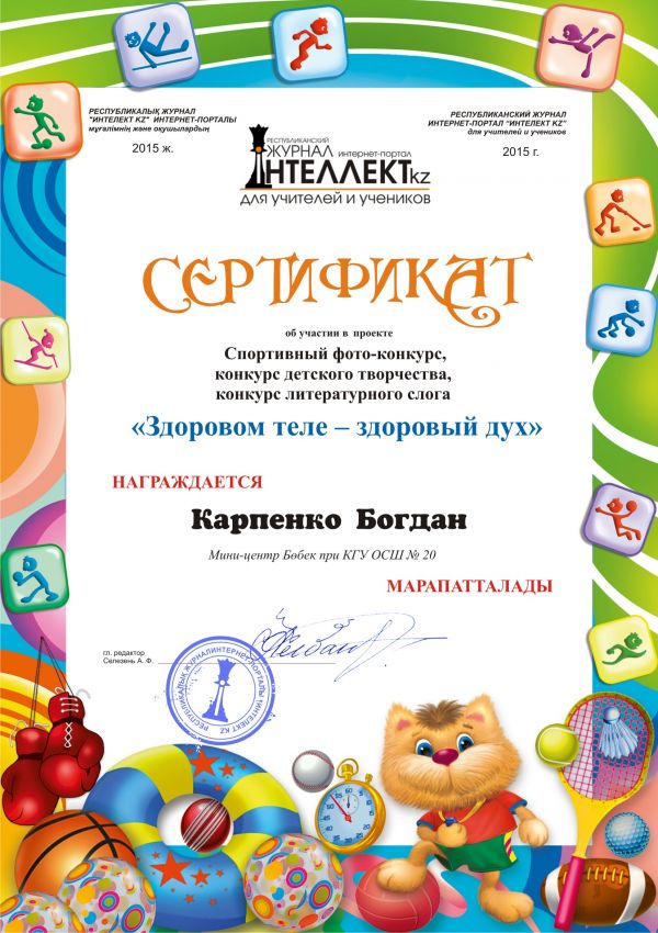 Мини-центр "Бөбек" продолжает активно сотрудничать с Республиканским журналом интернет-порталом "Интеллект kz" и с большим удовольствием получает красочные сертифи…
