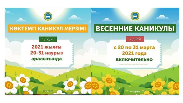 Весенние каникулы для школьников составляют 12 дней и продлятся с 20 по 31 марта включительно.