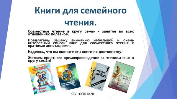 Среди разнообразия современной детской литературы трудно сделать выбор. Предлагаем Вам обзор книг для семейного чтения. Не отказывайте себе в удовольствии провести время вместе с детьми за увлекател…