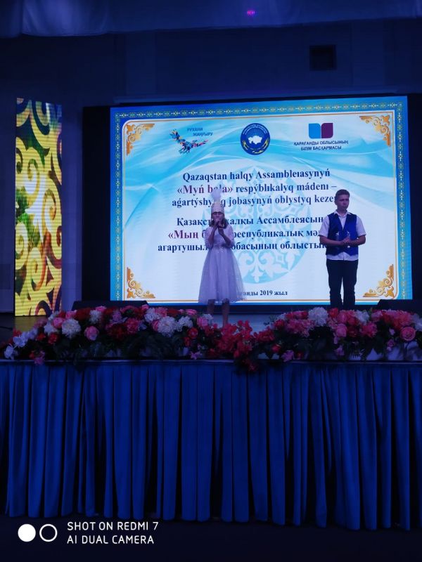 Ученица 6 класса КГУ "ОСШ №20" Трясцина Мария приняла участие в проекте "Мың бала", организованном Ассамблеей народа Казахстана.