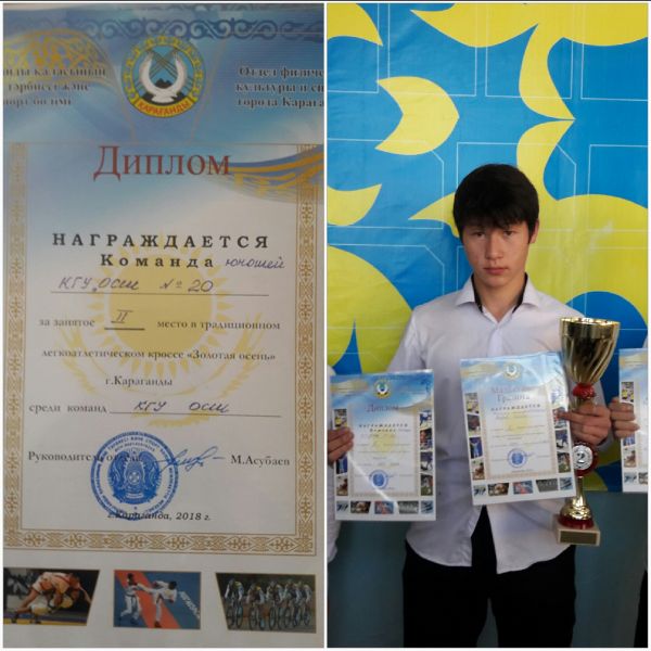Юноши КГУ "ОСШ №20" заняли второе место в традиционном легкоатлетическом кроссе "Золотая осень"