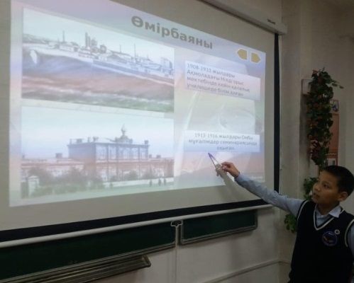 16.10.2019 – Ұлы Отан соғысының батыры Рахымжан Қошқарбаевтың 95 жылдық мерейтойына байланысты мектеп кітапхансында Ерлік сабағы өтті.
