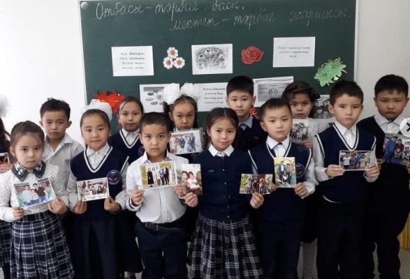 16.10.2019 – Ұлы Отан соғысының батыры Рахымжан Қошқарбаевтың 95 жылдық мерейтойына байланысты мектеп кітапхансында Ерлік сабағы өтті