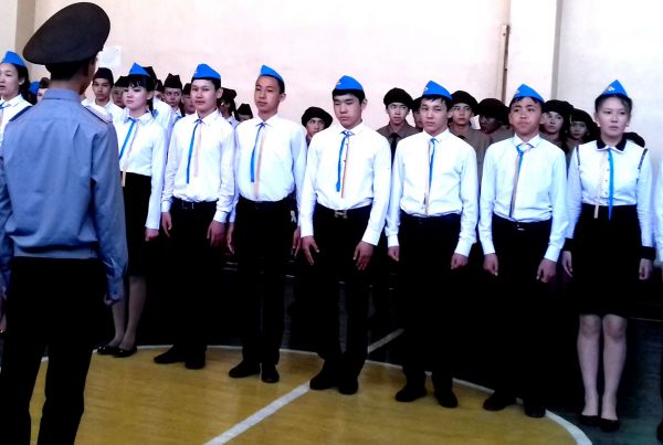 В КГУ СОШ№61 состоялся смотря строя и песни, посвященный 25-летию Вооруженных сил РК