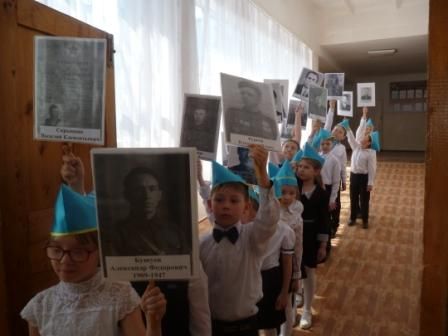 В рамках месячника «Патриот»в КГУ СОШ61 среди учащихся 1-4 классов состоялся конкурс инсценированной военной песни. Так же по школе прошел Бессмертный Полкс портретами родных и бли…