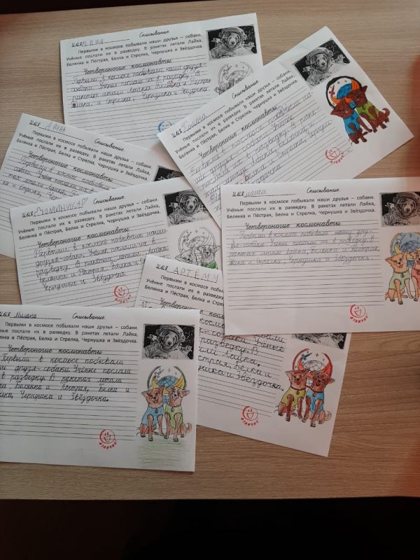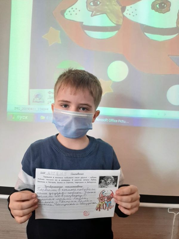 "Четвероногие космонавты" - такая тема была сегодня на уроке обучения грамоте в 1 "А" классе, посвящённая Дню Космонавтики.