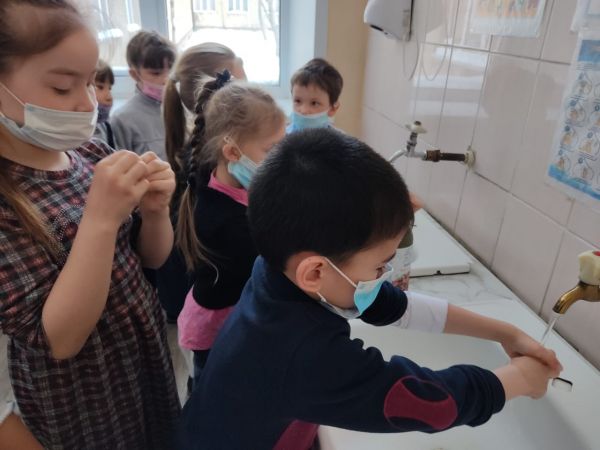 1"А" класс на уроке физической культуры познакомился с казахской национальной игрой "Куме алу" - "Подними монетку".