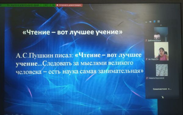 1 марта 2021 г. на платформе Zoom учителем русского языка и литературы Реймер Л.С. проведено внеклассное мероприятие «Чтение – вот лучшее учение» для учащихся 6-х классов.