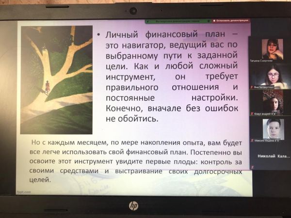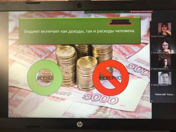 22 февраля 2021 года на платформе Zoom для учащихся 8 «В» класса проведён классный час «Основы личного финансового планирования».
