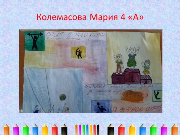 В рамках недели физической культуры продолжается конкурс рисунков о спорте наших ребят.