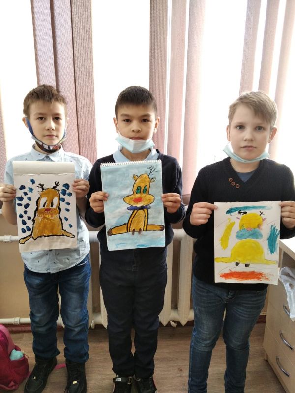 Урок ИЗО в 3 «А» классе. Учащиеся рисовали веселого оленёнка, работы получились красочные и яркие. Учитель: Лагуткина О.В.