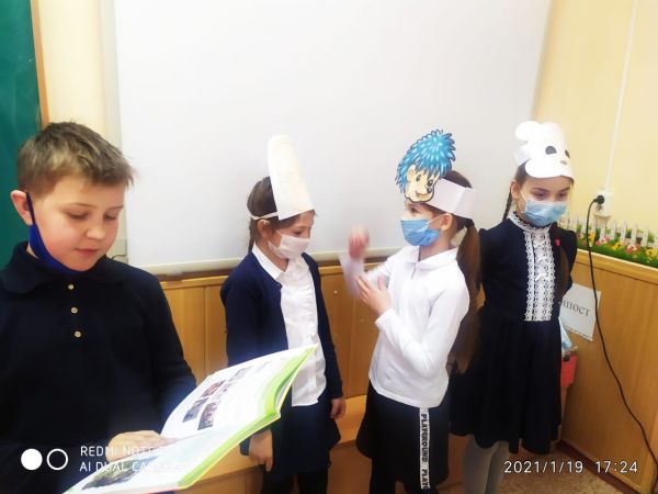 Урок литературного чтения в 3 Б классе. Ребята активно участвуют в инсценировке сказки. Развивают навыки пересказа, чтения по ролям. Учитель: Стец Н.А
