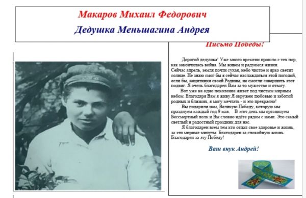 Учащиеся нашей школы продолжают принимать участие в акции "Письмо Победы"-написание "писем в прошлое"- писем, членам своей семьи, которые воевали, защищая Родину.