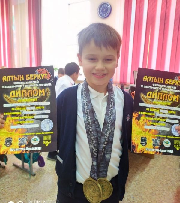 Қазақстан чемпионатында, Алтын Бүркіт турнирінде 4"б" сынып оқушысы Тункин Вячеслав пауэрлифтинг және күштік спорт түрлерінен бірінші орынға ие болды.