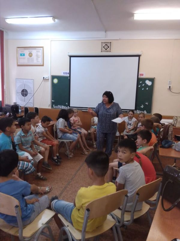 10.07.18. После бодрой утренней зарядки с детьми была проведена беседа на тему "Права и обязанности школьника". Беседу проводил юрист Турлыбекова Б.Ж. из ЦСППП "Шанс". З…