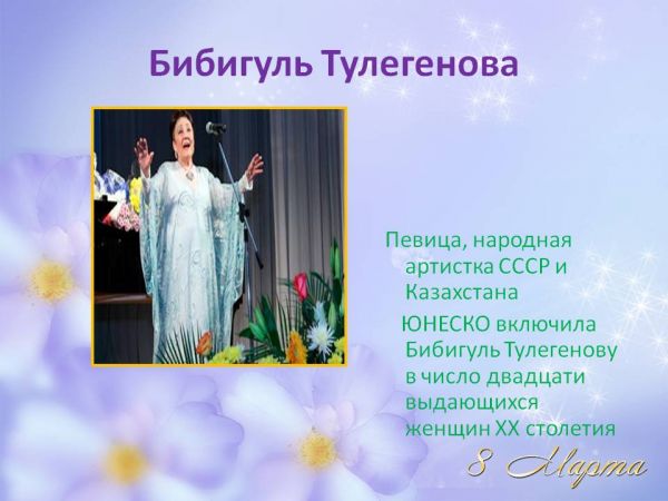 Тема:Великие женщины Казахстана, прославившие свою страну и народ.