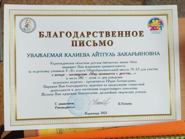 28 октября учащиеся 4 Б приняли активное участие в вечере посвящённое 180 летию Ы.Алтынсарина в ОДБ им.Абая.