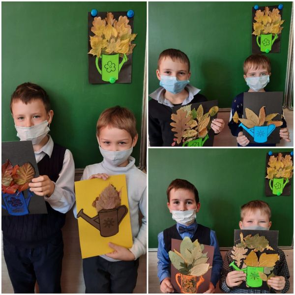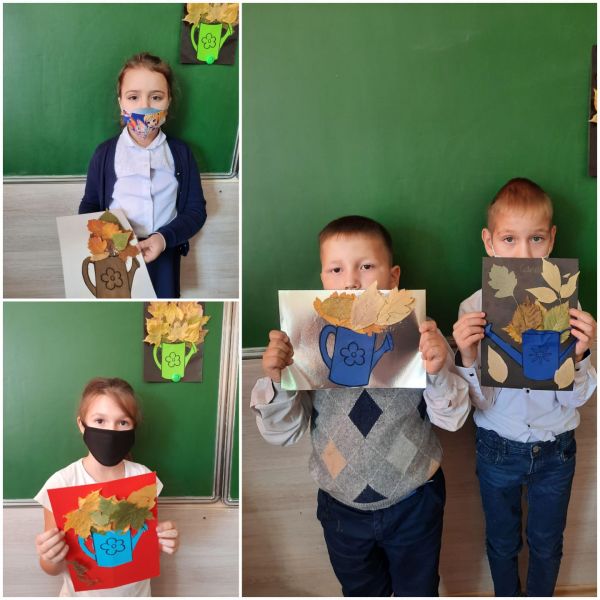 Во 2 "А" классе на уроке художественный труд ребята выполнили поделку из осенних листьев.