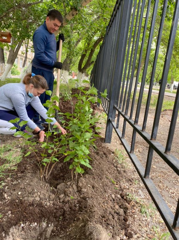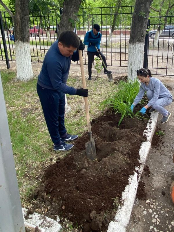 Учителя и учащиеся 5а класса активно занимаются озеленением школьного участка.
