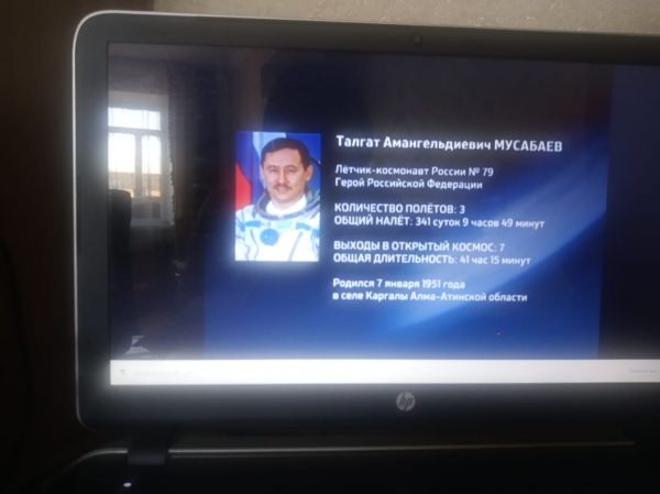 В рамках празднования Дня Космонавтики в 7 «Б» классе прошел классный час на тему: "Казахстан - космическая держава".