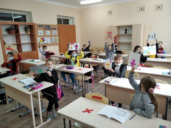 На предметной неделе в начальной школе учащиеся 3 "А" класса делали геометрическую мозаику.