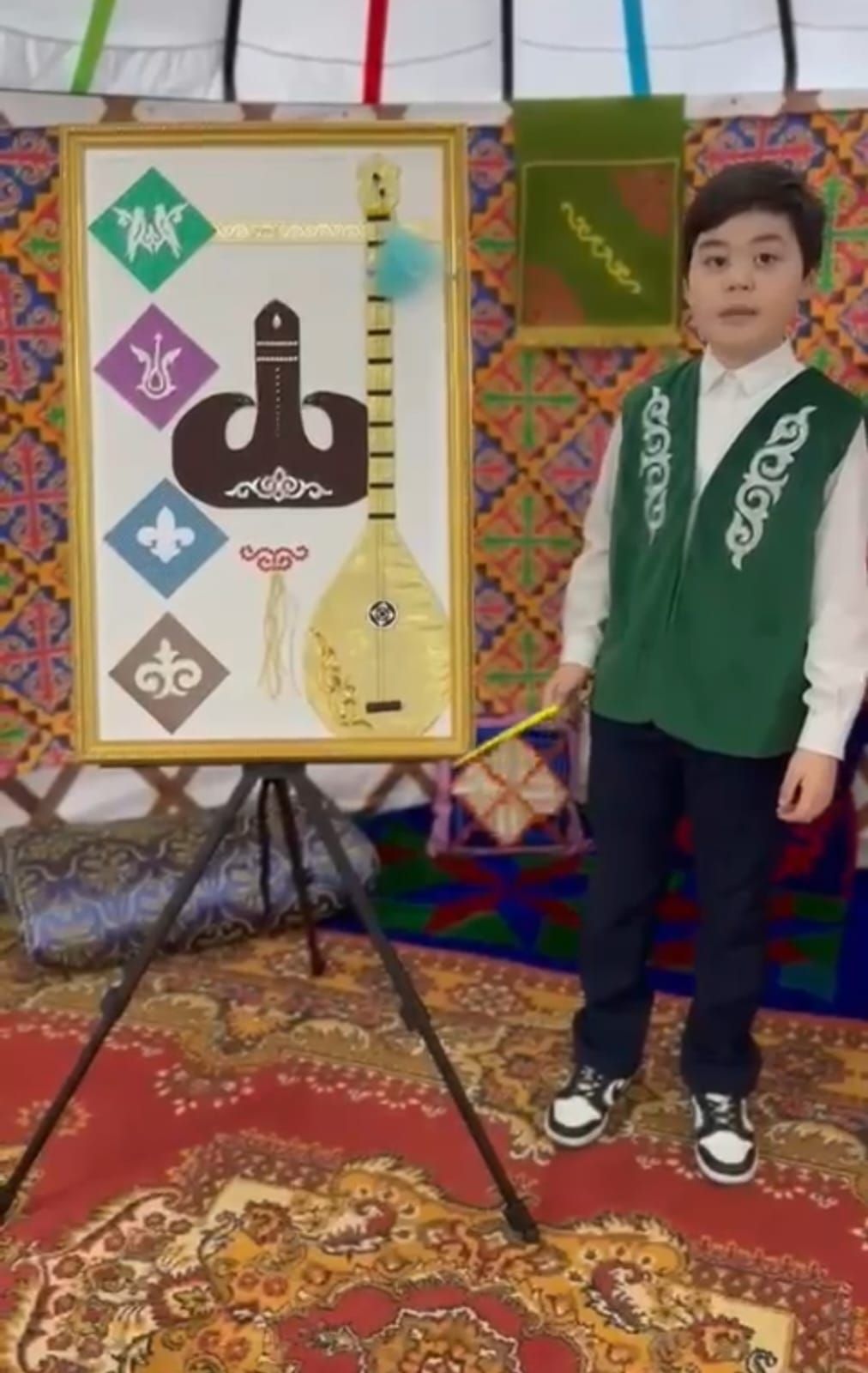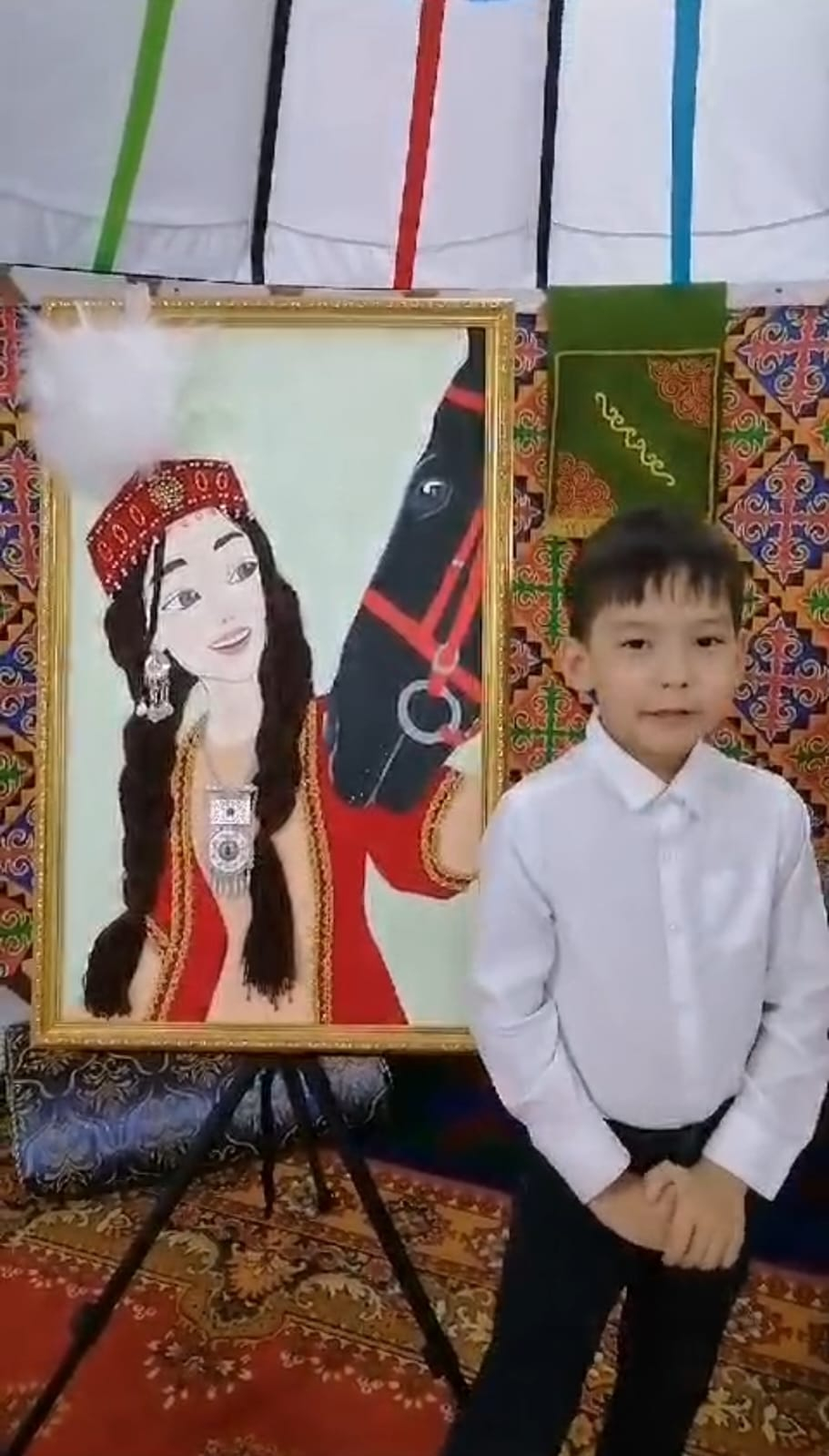 2А сынып оқушысы Кулмуханов Расулдың "Көрісу күні" іс-шара аясында өткізілген "Қазақ қыздары - керемет шабармандар" атты картинасының тұсаукесері