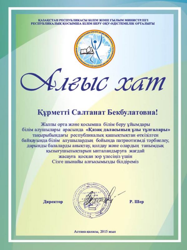 Учащиеся школы - Скрипникова Элина 7А класс и Манукян Карен 6А приняли участие в Республиканском дистанционном интернет конкурсе "Великие личности Казахской степи". По итогам конкурса Ману…