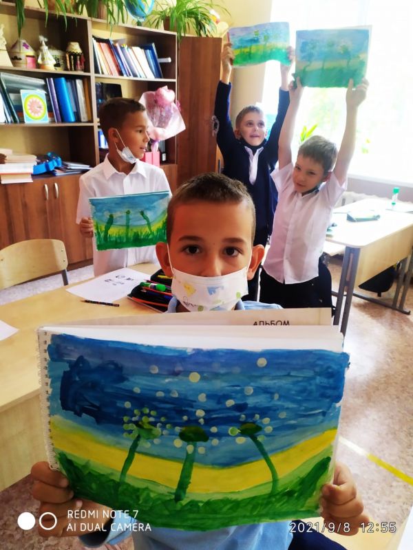На уроке художественного труда во 2 В классе ребята прощались с летом.