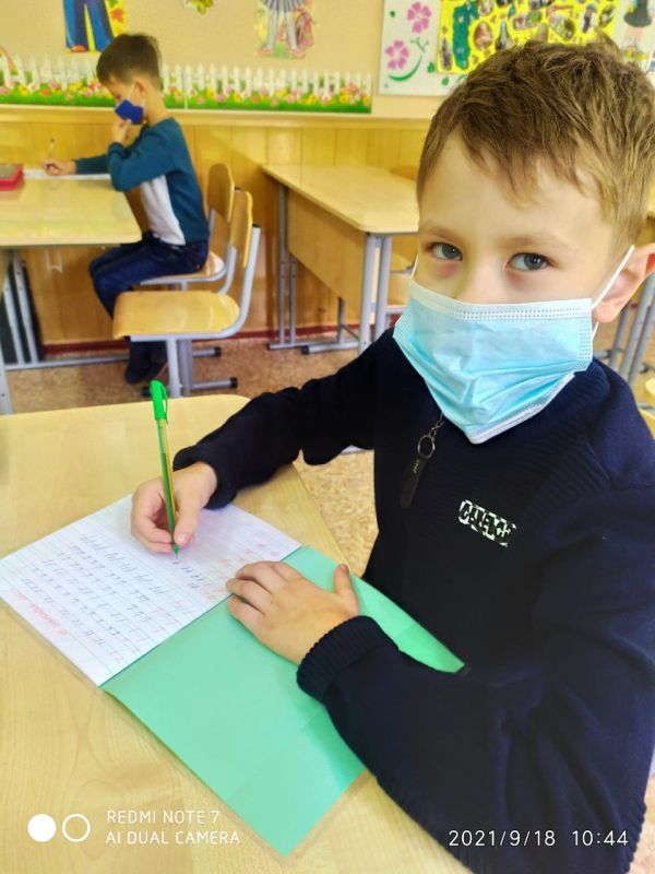 Сегодня ученики 2 В класса занимались каллиграфией.