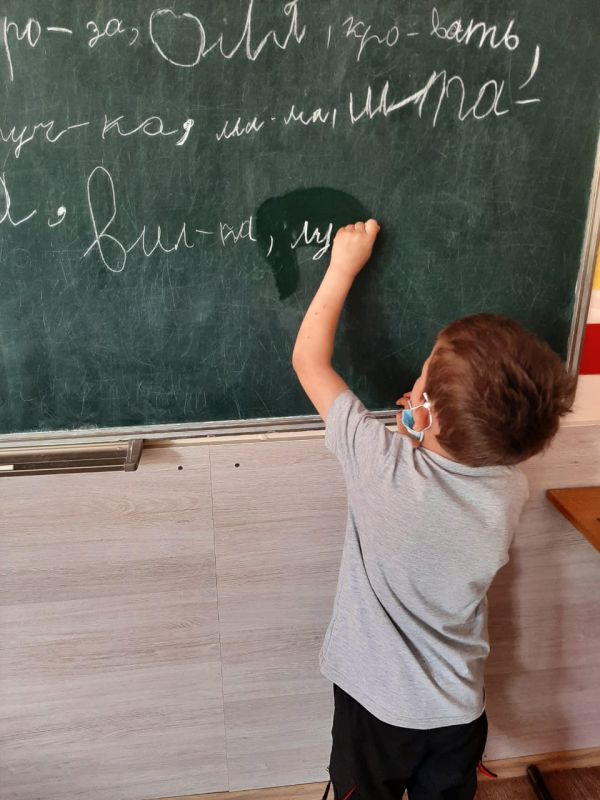 В Летней школе ученики первых классов вместе с Джаксалыковой Н.В. отрабатывали каллиграфические навыки, повторили правила переноса слов.