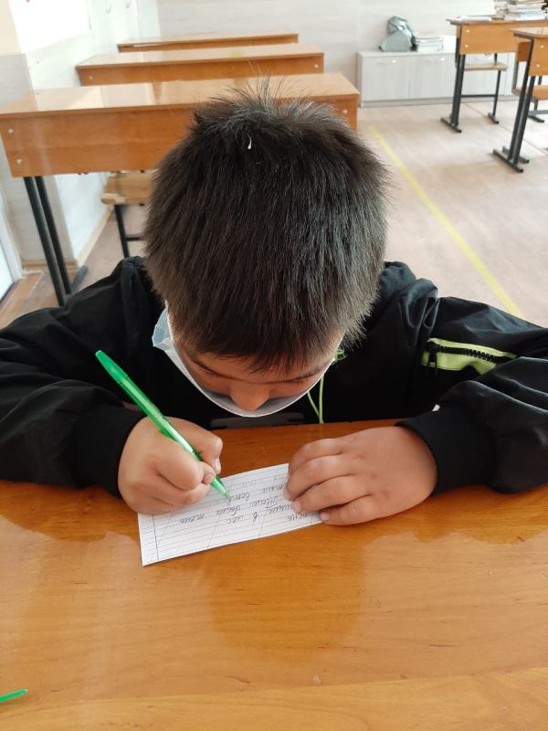 На уроке казахского языка вместе с учителем Маратовой А.М. ученики 6-7кл сочинили рассказ на тему "Еңбек".