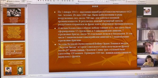Классный час посвященный Дню Победы, был проведен в 5 «В» классе на тему «Казахстан в годы Великой Отечественной войны».