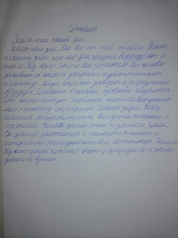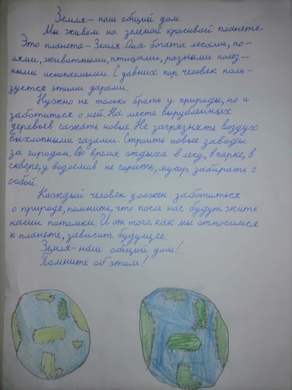 В рамках недели естестеннонаучной грамотности учашиеся начальных классов нашей школы писали сочинение "Земля - наш общий дом".