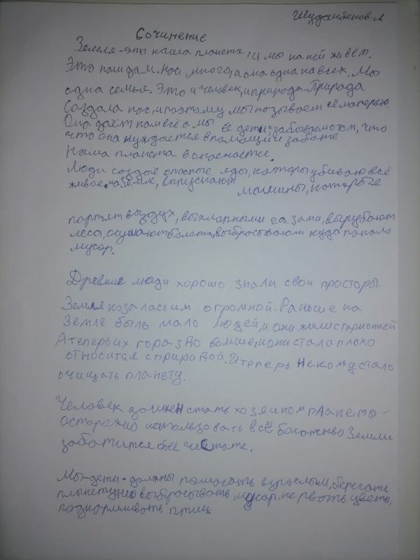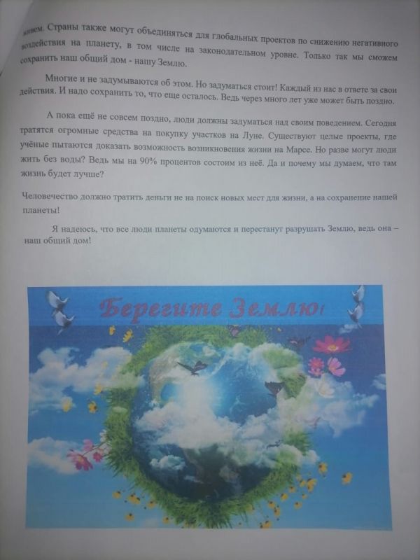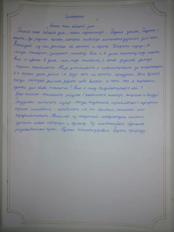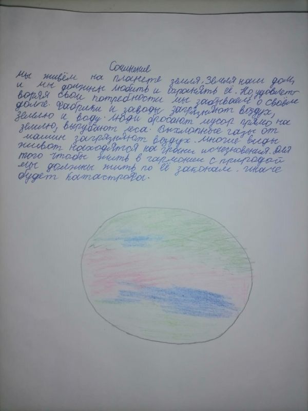 В рамках недели естественнонаучной грамотности учащиеся 3 «Б» класса нашей школы написали сочинение "Земля - наш общий дом".