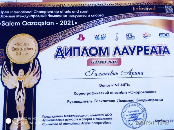 Ученица 3 Б класса Галюкевич Арина с детства занимается танцами. У нее отличные результаты и очередная победа!!!