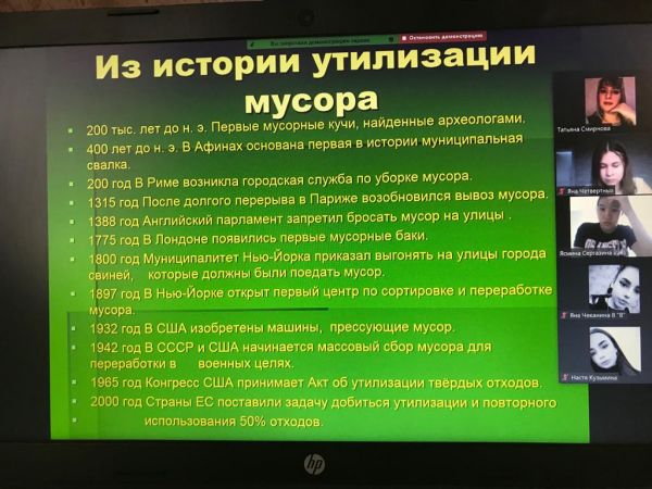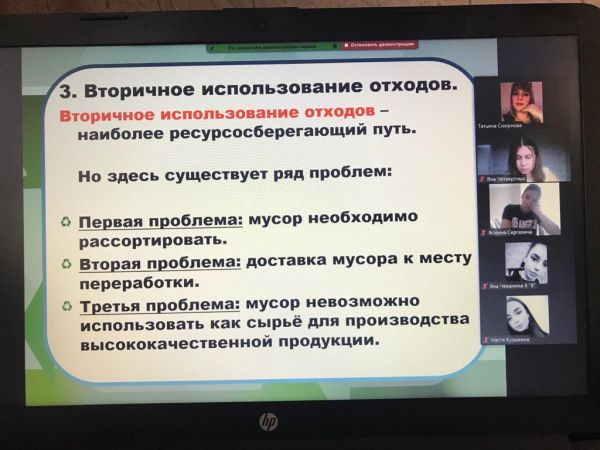 5 апреля на платформе Zoomдля учащихся 8 «В» класса проведён классный час на тему «Безотходное производство – это забота об экологии».