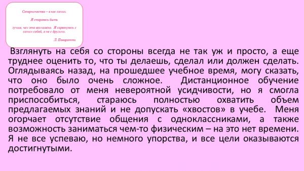 Согласно плану проведения декады по самопознанию, учащиеся 7 – х классов написали Эссе на тему: «Письмо самому себе», где каждый ученик попробовал разобраться в своих чувствах, эмо…