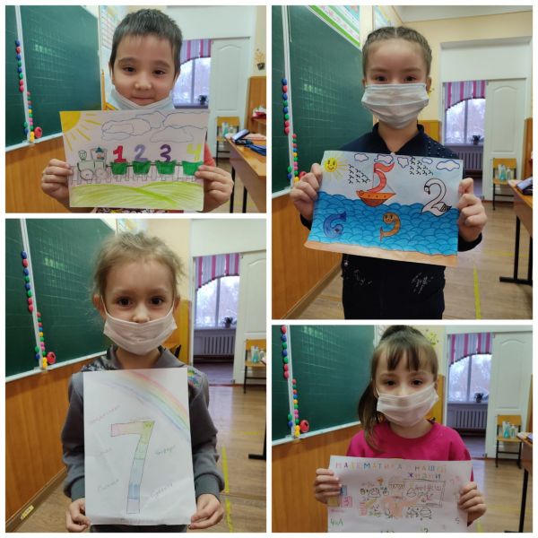 Ученики 1 Б класса по плану проведения недели математической грамотности подготовили рисунки на тему "Математика - мир глазами детей".