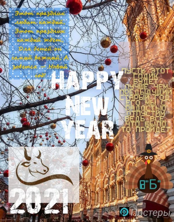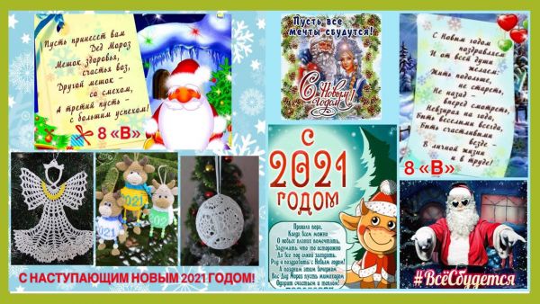 С Новым Годом поздравляет 8 «Б» класс, ребята выполнили креативный коллаж.