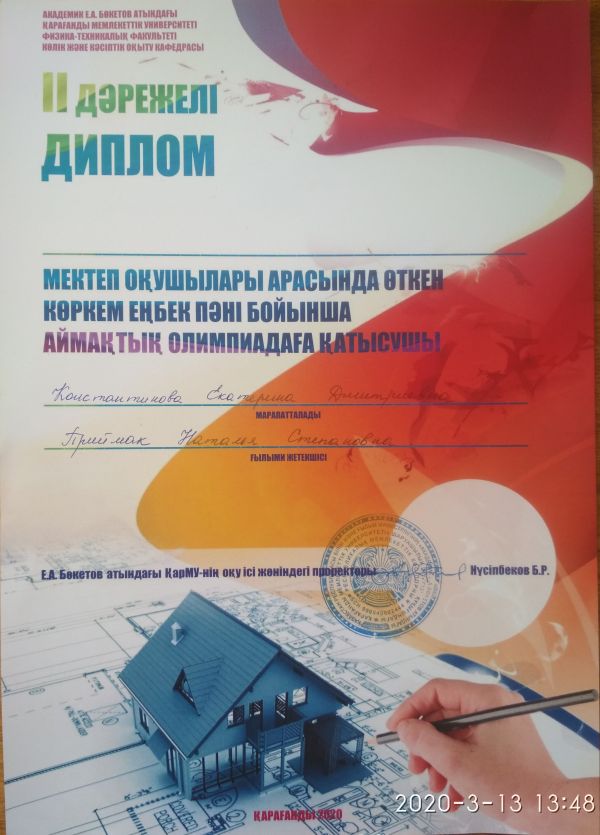 Поздравляем Константинову Екатерину, ученицу 8 «А» класса, которая стала призёром региональной предметной олимпиады по художественному труду среди учащихся 8-11 классов. Екат…