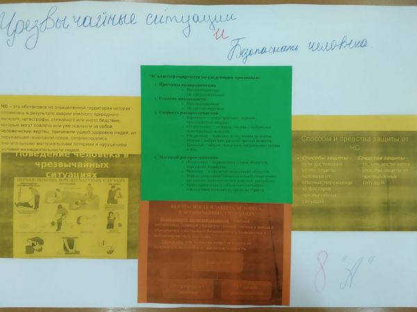 Работы учащихся, в рамках проведения «Дня Гражданской защиты». Ребятами были выполнены – буклеты, коллажи, информационные листки, презентации.