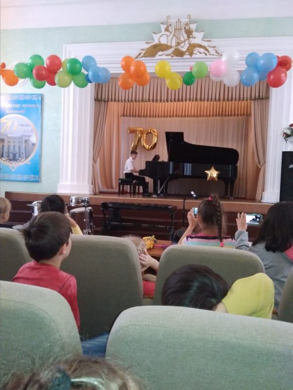 26.06.2018. Пошли в музыкальную школу смотреть концерт. Выступали дети с разными музыкальными инструментами: играли на фортепиано, на баяне, на домбре.